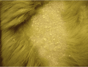 The name “Ichthyosis” is derived from the Greek word for fish. This describes the skin’s resemblance to fish scales. The most common symptom of ICH/ICH2 is excessive flaking of the skin. Other symptoms include areas of hardened skin and hyperpigmentation, which may make the skin appear dirty or blackened. Symptoms can be mild or severe. Evidence of the disease may be detected when the dog is still a puppy, but symptoms may take a year or more to develop. Additionally, symptoms can improve or worsen, depending on stress and hormonal cycles. ICH2 is characterized by severe flaking with large amounts of whitish to brown scales and secondary infections with Malassezia. Weight loss and lethargy are associated with ICH2. These are often not manageable with medications or baths.